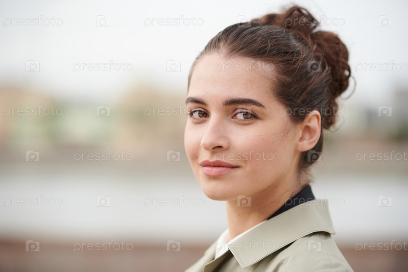 Портрет брюнетной женщины в пальто
