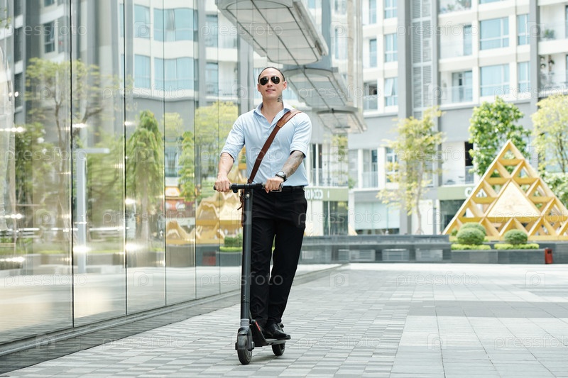 Мужчина наслаждается ездой на скутере