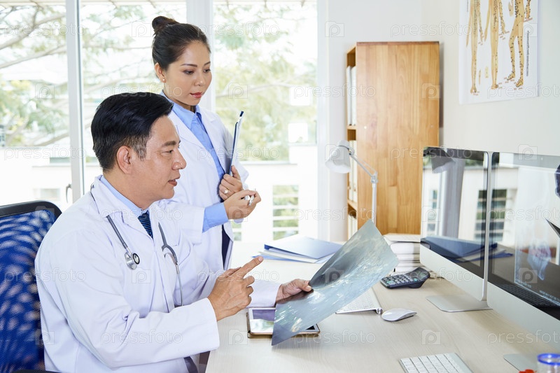 Два азиатских врача, работающих вместе