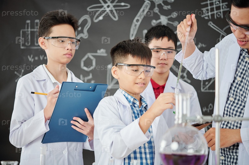Учитель показывает студентам реакцию