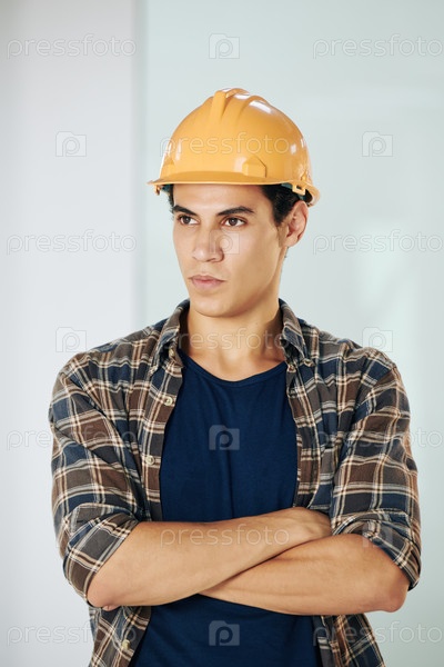 Серьезный молодой строитель