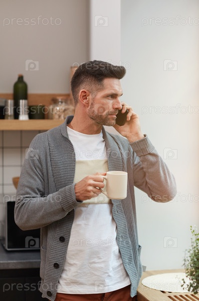 Взрослый мужчина пьет кофе в современное утро