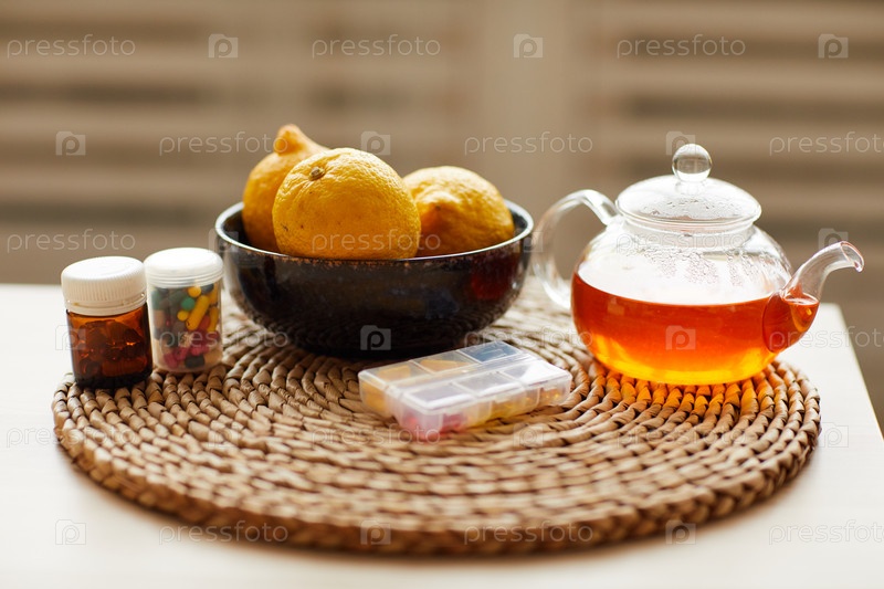Горячий чай с лимонами и таблетками