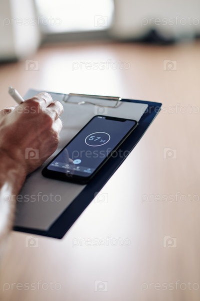 Фитнес-тренировщик проверяет хронометр