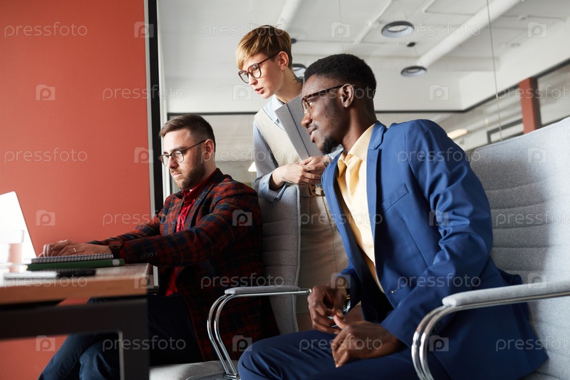 Боковый взгляд на бизнес-группу Работа в офисе