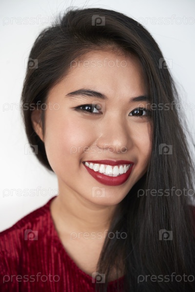 Улыбающаяся женщина Близкий азиатский