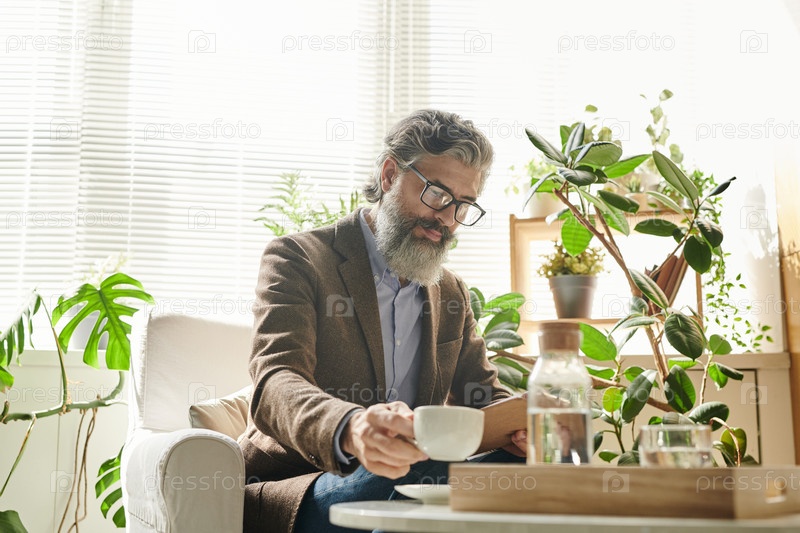 Зрелый мужчина пьет современный кофе