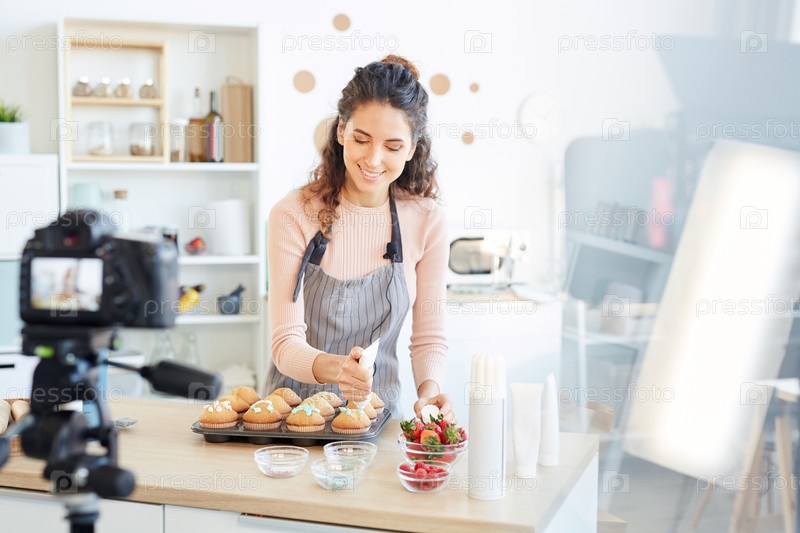 Бейкер украшает кексы
