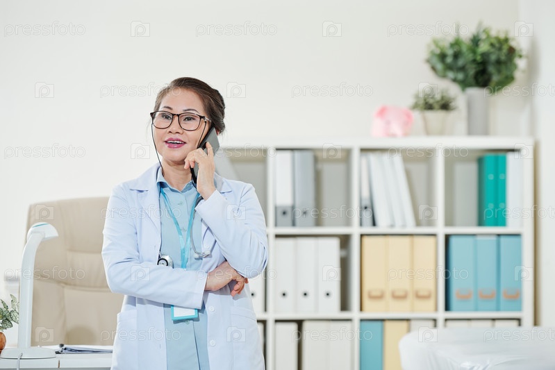 Врач общей практики разговаривает по телефону