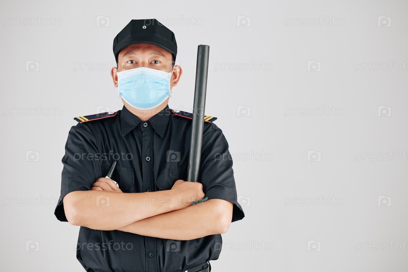 Уверенный полицейский в медицинской маске