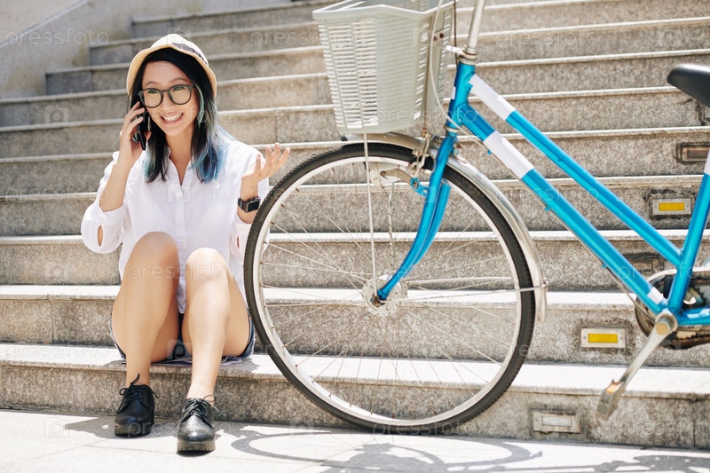 Взволнованная китайская женщина разговаривает по телефону