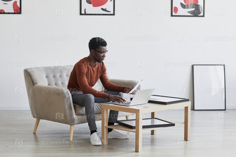 Молодой африканский бизнесмен, работающий в дизайнере интерьеров