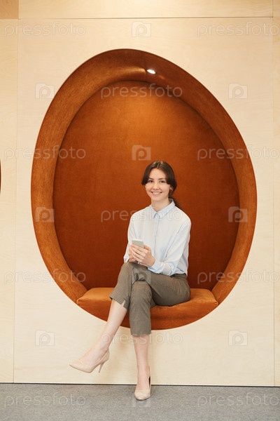 Молодая начинающая бизнесвуменка позирует в офисе компании