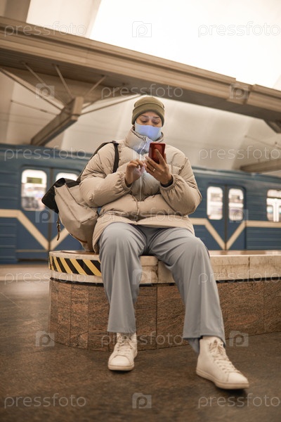 Женщина, пользующаяся телефоном в метро