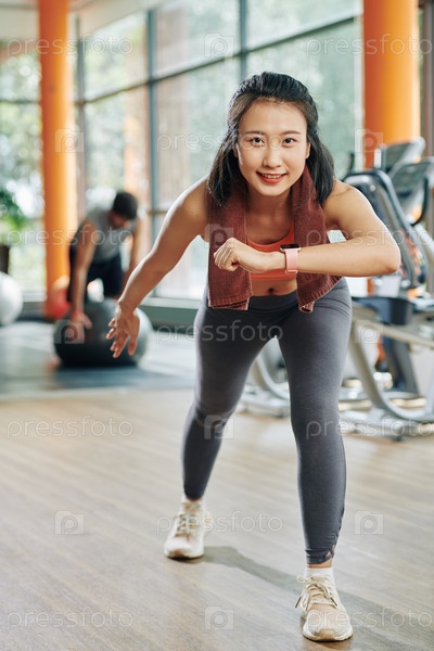 Упражнение улыбающаяся молодая женщина