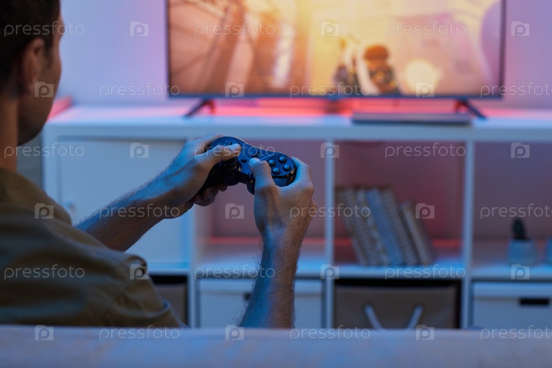 Человек играет в видеоигру