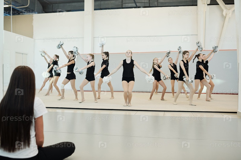 Чирлидеры танцуют на общей репетиции перед тренером