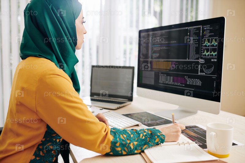 Женщина проверяет код impleDFHJDHGFJHSDFKHKJFHKDSJHFKJHDFKJDHtation
