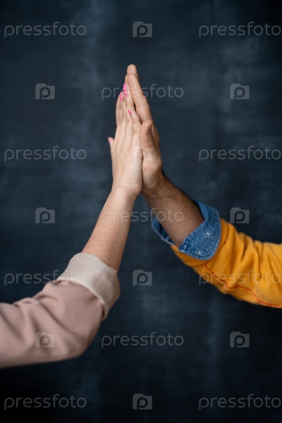 Руки двух молодых успешных профессионалов, дающих друг другу высокую пятерку