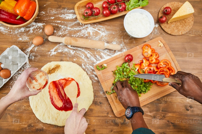 Пара готовит пиццу