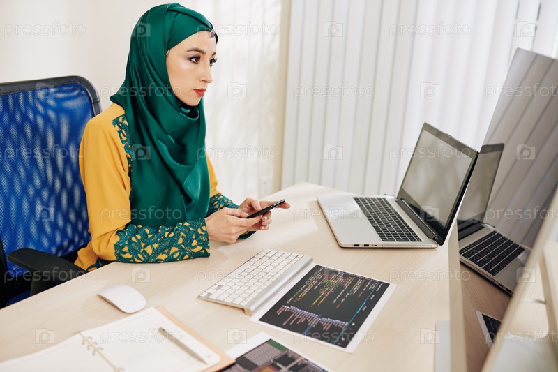Женщина-кодер отправляет текстовые сообщения