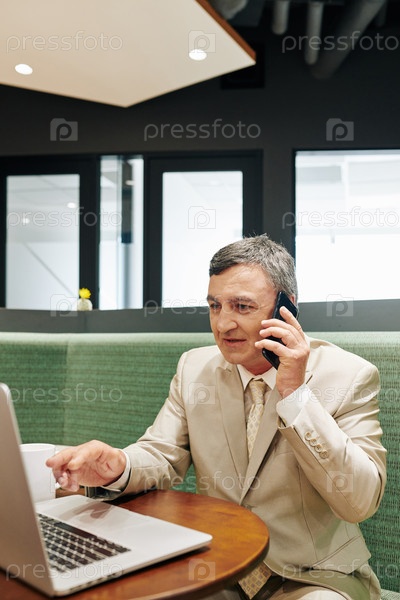 Бизнесмен, работающий в современном кафе