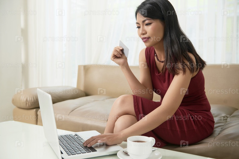 Женщина покупает онлайн
