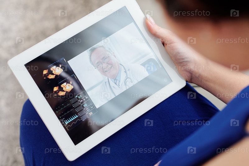 Беременная женщина видеозвонит гинекологу
