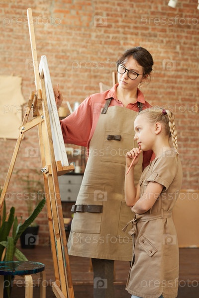 Учитель преподает урок искусства