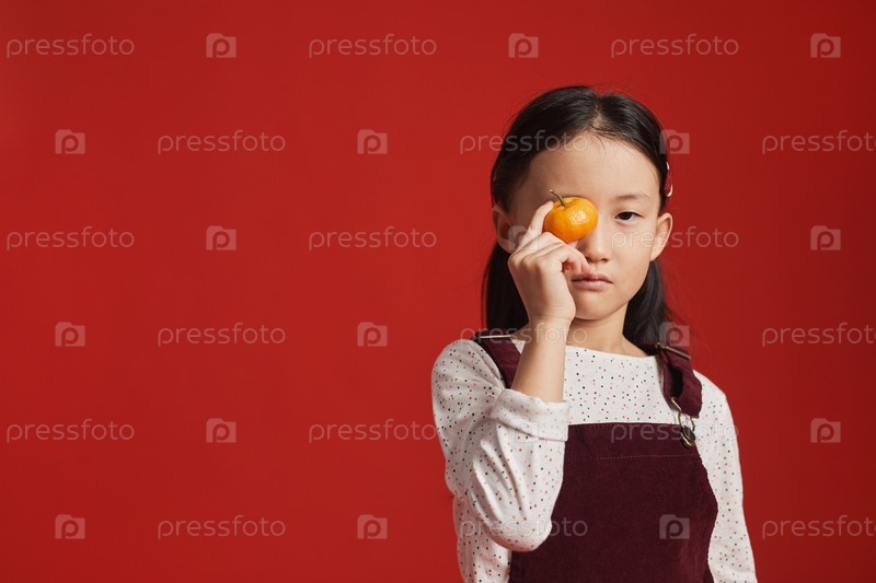 Китайская девочка с мандаринкой