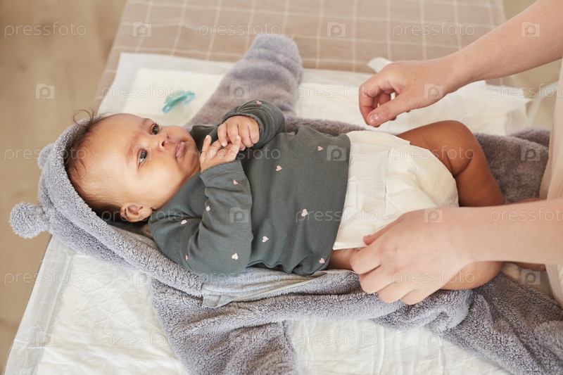 Мама меняет детские подгузники Мать закрывает