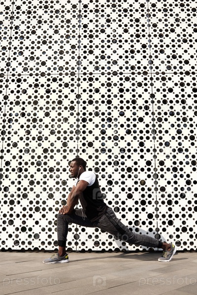 Спортсмен, растягивающийся на улице