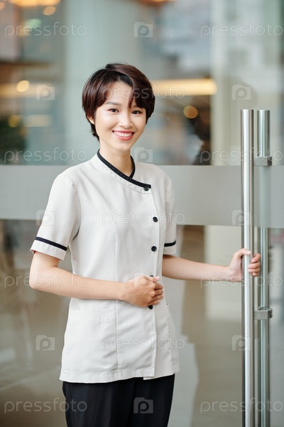 Веселый азиатский менеджер гостиницы