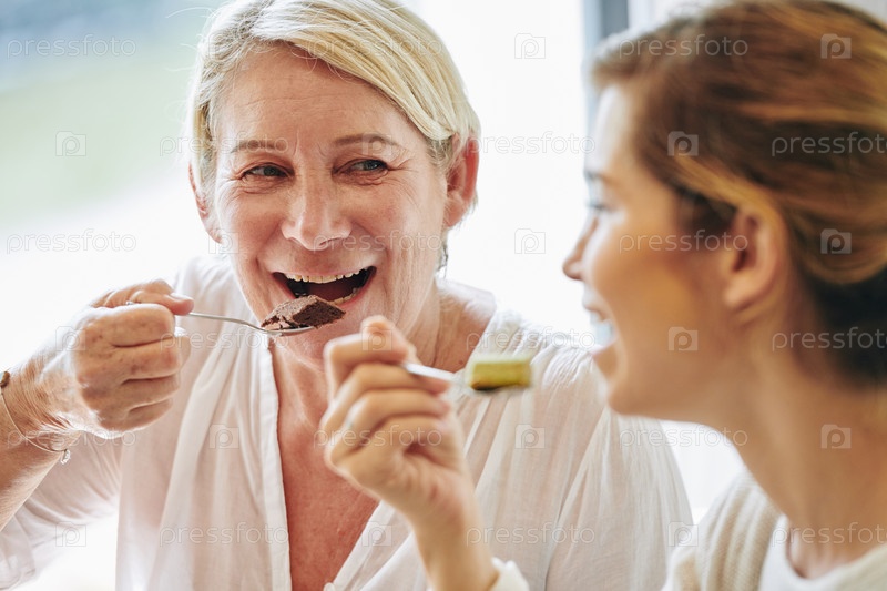 Зрелая женщина ест десерт