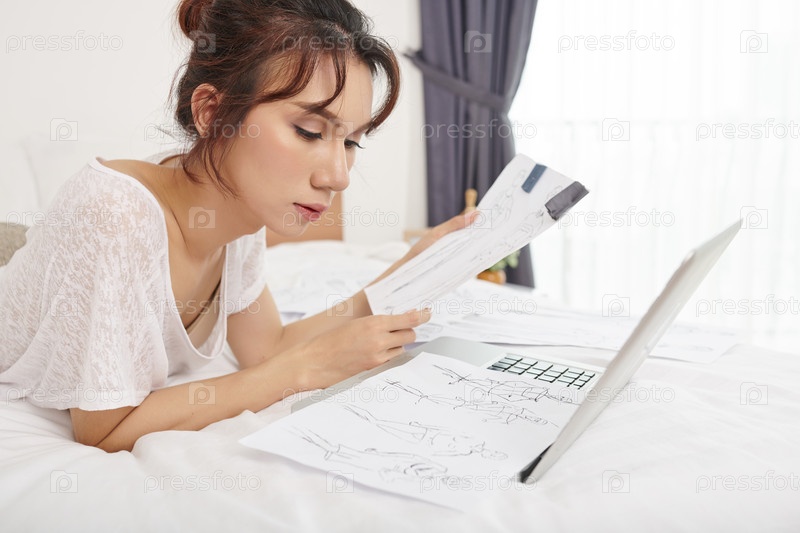 Ледибой смотрит на модный эскиз