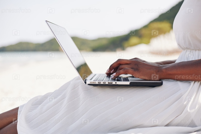 Независимая женщина, работающая на пляже