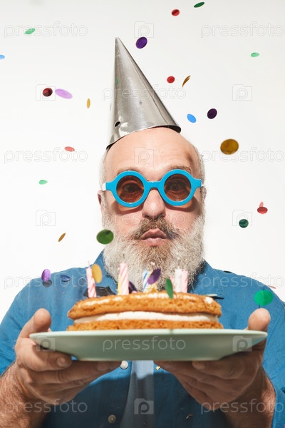 Старший человек с тортом