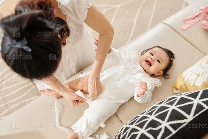Мать одевает девочку