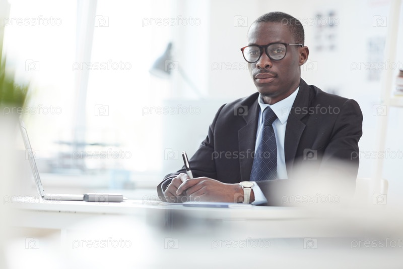 Успешный африканский бизнесмен в офисе