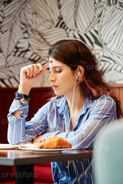 Вдумчивая студентка в кафе