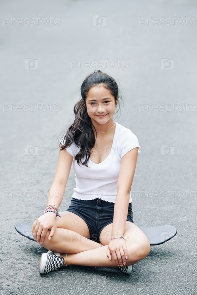 Девушка, отдыхающая на скейтборде