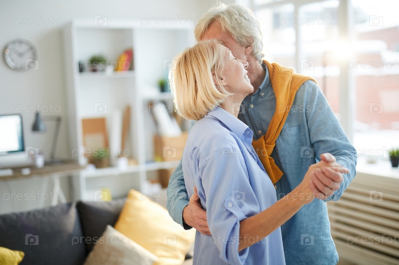 Зрелая пара танцует в гостиной