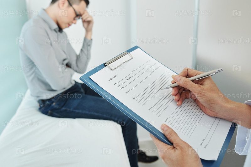 Врач заполняет медицинскую карту