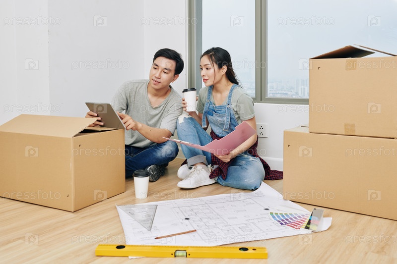Мужчина делится дизайнерскими идеями с девушкой