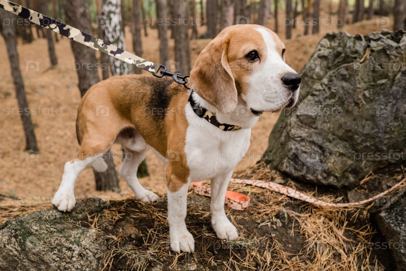 Милый чистокровный щеночек бейгл с декоративным ручным ошейником и поводком