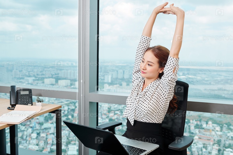 Деловая женщина растягивается в своем кресле
