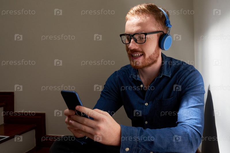 Мужчина, слушающий музыку по телефону