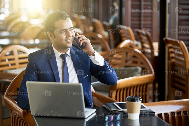 Бизнесмен, работающий в кафе