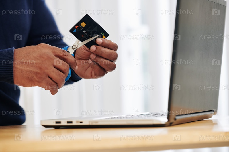 Человек, вырезающий кредитную карту