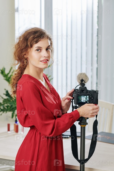 Красивая блогерша с камерой